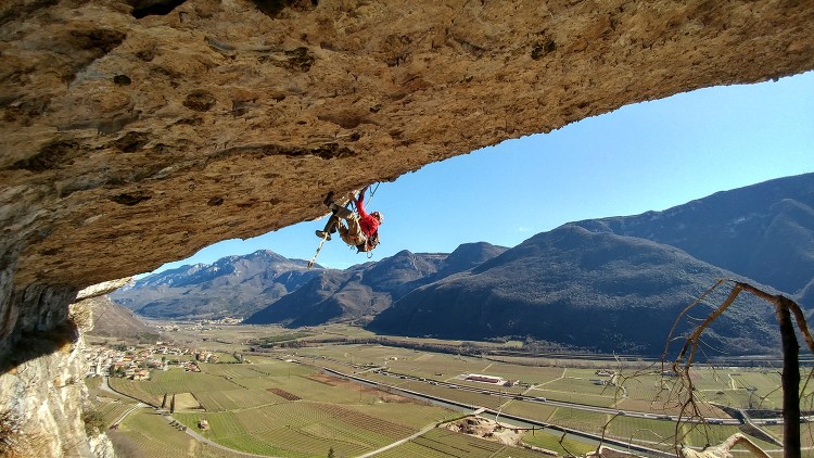 Dal termine della via non alzarsi lungo il bosco ma traversare orizzontalmente verso nord (direzione Brentino). Dopo 40 m abbassarsi in direzione di un albero con cordone da utilizzare per la prima calata.
