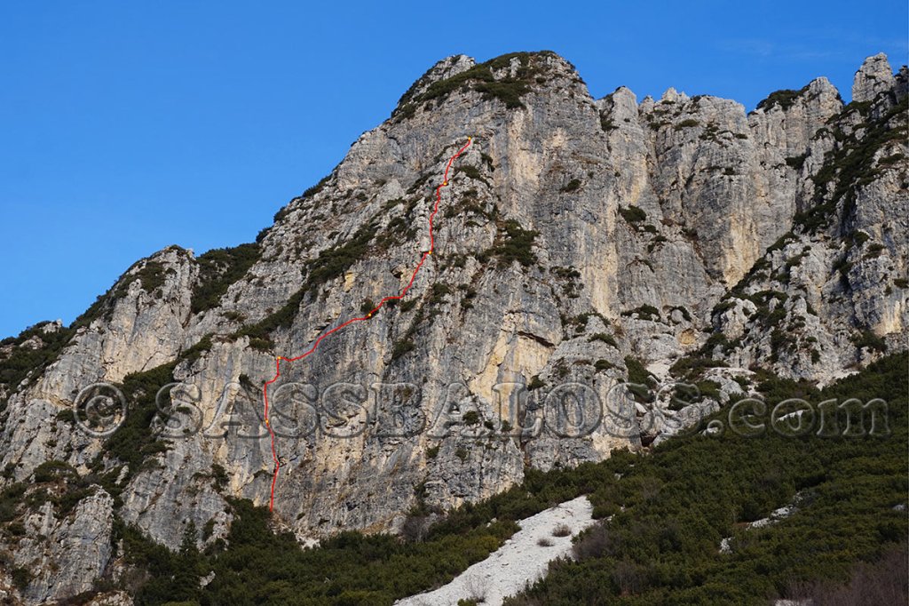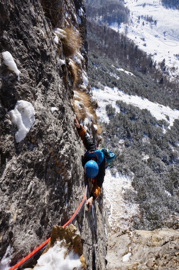 La cima è stata raggiunta il 16 marzo 2019 con largo uso di protezioni veloci, dopo due precedenti tentativi invernali (30 dicembre 2018 e 04 gennaio 2019), terminati per via della troppa neve presente in parete.